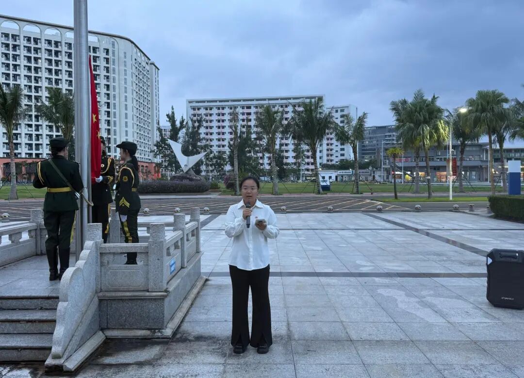 首先,由学生代表药学院 2025 级本科生刘畅做国旗下演讲,演讲以“铭记抗战精神,勇担自贸港建设时代使命”为主题,缅怀革命先烈,号召同学们铭记抗战胜利启示,继承先辈精神,将青春梦融入中国梦,为海南自贸港建设奉献力量,助力中华民族伟大复兴。