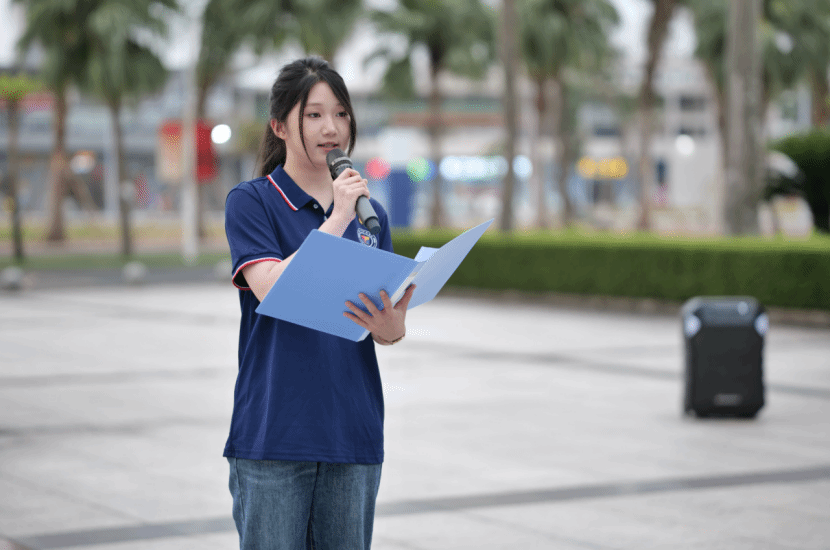 学生代表冯韵竹玲做国旗下演讲,演讲以“纪念海南解放75周年”为主题,缅怀革命先烈,教育青年一代铭记历史,传承红色基因,争做时代新人,为海南自贸港建设奉献青春力量。