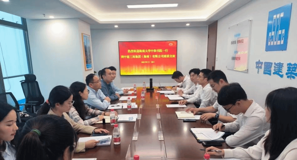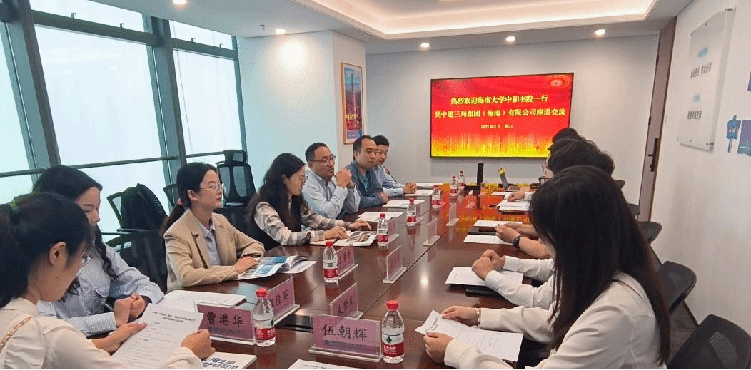 3月28日下午,,yl6809永利皇宫副处级辅导员公衍峰、辅导员齐昌盛、杨玉珅与,yl6809永利皇宫学生代表一行前往中建三局集团(海南)有限公司,开展院企合作座谈交流。中建三局集团(海南)有限公司党委副书记彭松、人力资源部经理丁泽华、团委书记黄业发等参加座谈。