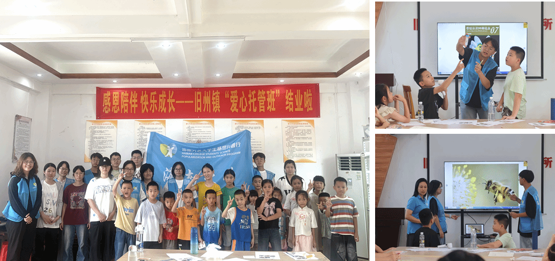 随后,服务团赴旧州镇政府活动中心,为“爱心托管班”的小学生们带来了一场生动有趣的植物保护知识科普课。谢佳副教授和学生志愿者通过精美的图片展示、实物观察和互动游戏等多种形式,充分调动孩子们的参与热情。热闹轻松的氛围中,小朋友们既掌握了植物保护的基础知识,感受了科学的神奇之处,更在心中种下了对自然世界好奇与求知的种子。