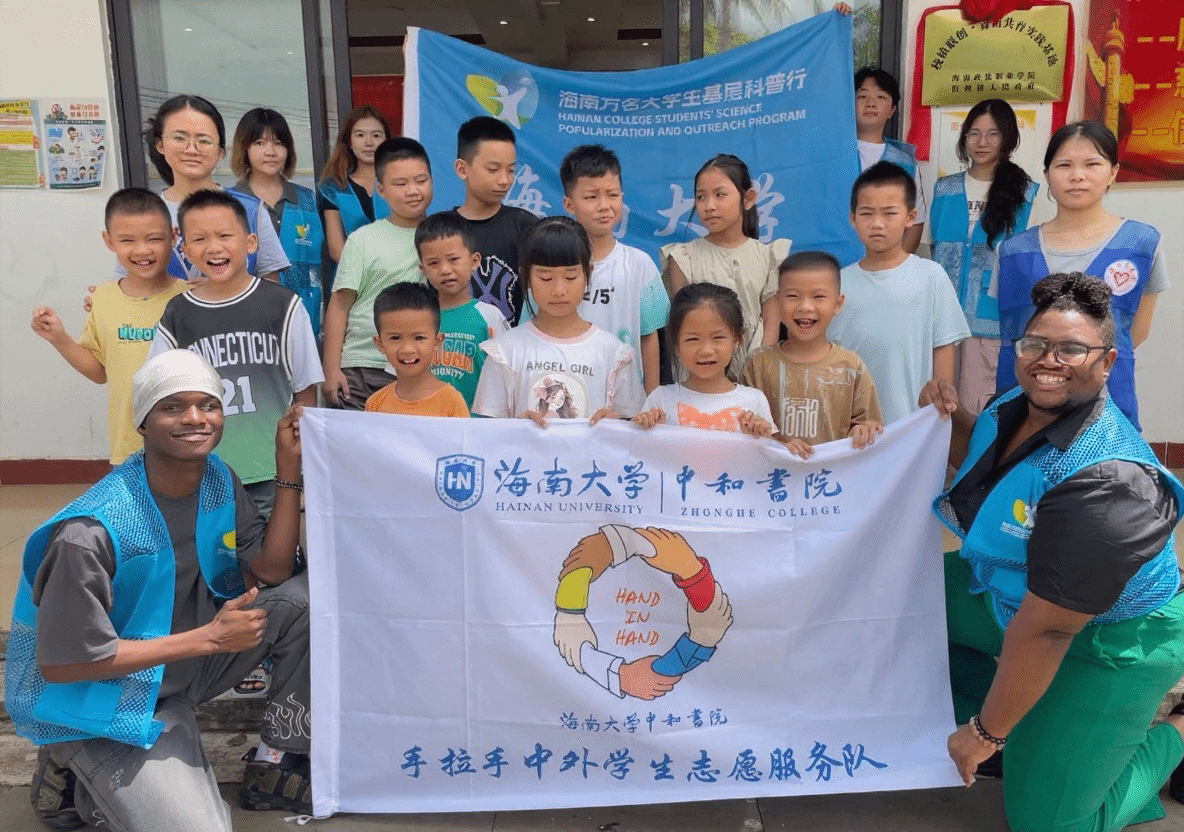 2025年8月,yl6776永利集团,yl6809永利皇宫手拉手中外学生志愿服务队深入海口市琼山区旧州镇文化服务站暑期爱心托管班,开展以“双语教育推动生态保护与民族文化传承”为主题的暑期社会实践。本次社会实践队伍由6名具有良好英文水平的中外学生组成。通过“中外学生1+1全程搭档模式”,为当地学生设计三大双语活动,搭建跨文化交流桥梁,赋能乡村青少年文化认同与环保意识。