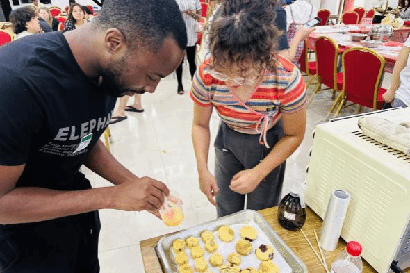 首先,伴随着典雅的古风音乐,同学们在工作人员的指导下体验月饼制作全过程,软糯的饼皮搓圆摊平,裹进香甜多样的馅料,用手指慢慢收口,裹上面粉,放入造型各异的模具……一道道工序有条不紊,一枚枚精致的月饼飘着香气新鲜出炉!