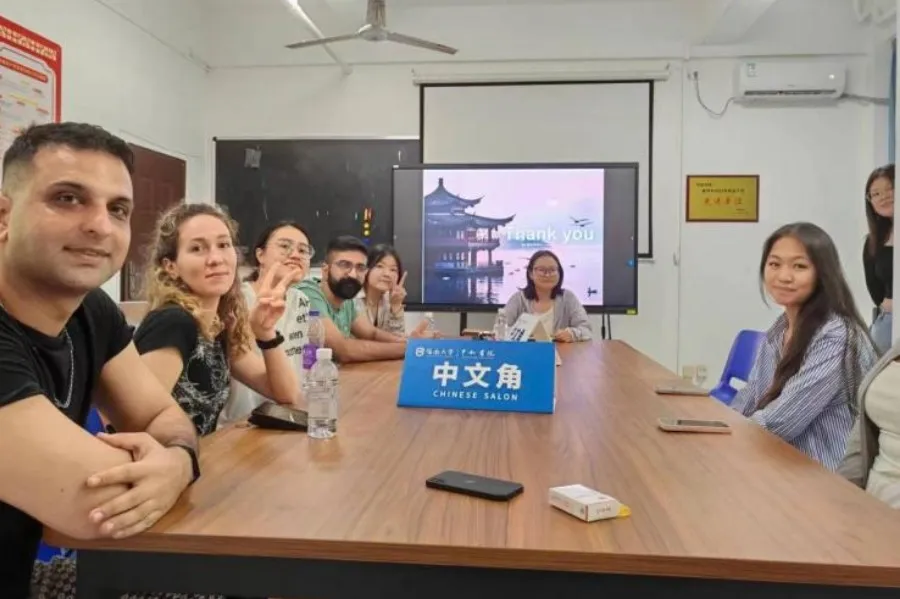 为增强中外学生交流、让中外学生更好地了解中国和认识中国,5月14日下午,,yl6809永利皇宫在15栋105教室开展了“云享文化,漫游中国”中文角活动。本次活动从中国文化、风土人情、历史发展等角度,选择北京、沈阳、长沙、西安、喀什等五个具有特色的中国城市,向中外同学介绍富有特色的中国城市,这五个城市也是2024年春晚分会场所在的城市。